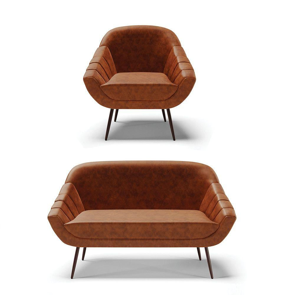 01 Namoradeira 02 Lugares E 01 Poltrona Corano Cor Nozes