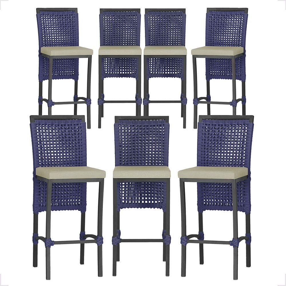 07 Banquetas Em Alumínio Roma Preta Corda Náutica Tecido 7 Azul
