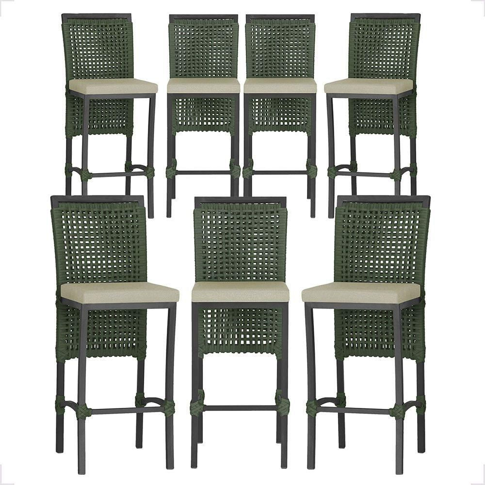 07 Banquetas Em Alumínio Roma Preta Corda Náutica Tecido 7 Verde
