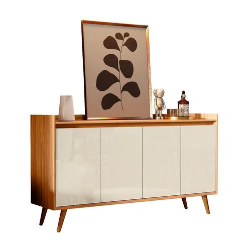 Balcao Buffet Retrô Delta 4 Portas Freijó Com Off White - Moveisaqui