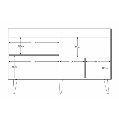 O Balcão Buffet Retrô Delta - MoveisAqui é excelente para organizar sua sala de estar ou jantar. Seus pés palito, levemente angulados destacam o estilo retrô que voltou para ficar. Possui compartimentos internos ideais para organizar seu aparelho de jantar, objetos pessoais e diversos itens necessários. Versátil, lindo e robusto, confere ao seu ambiente modernidade e organização. Dimensões do Produto Montado: Altura: 96 cm Largura: 158 cm Profundidade: 45 cm Observações: - Produzido em MDP; - 4 portas com dobradiças metálicas; - Pés palito, estilo retrô, em madeira pinus; - Peso suportado por prateleira: até 7kg; - Pintura Ultravioleta com acabamento brilho na cor off white; - Pintura Ultravioleta com acabamento semi brilho na cor freijó.