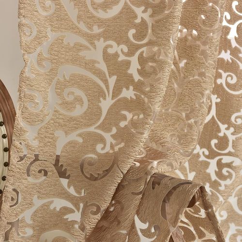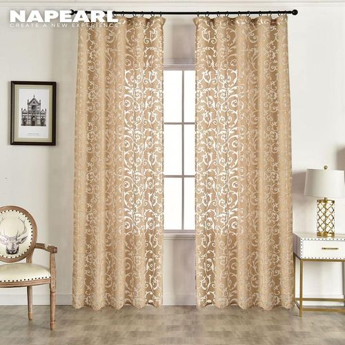 1 PC Cortina de Tule Curta Napearl Estilo Europeu 100x130 Largura 150cm x Comprimento 200cm / marrom