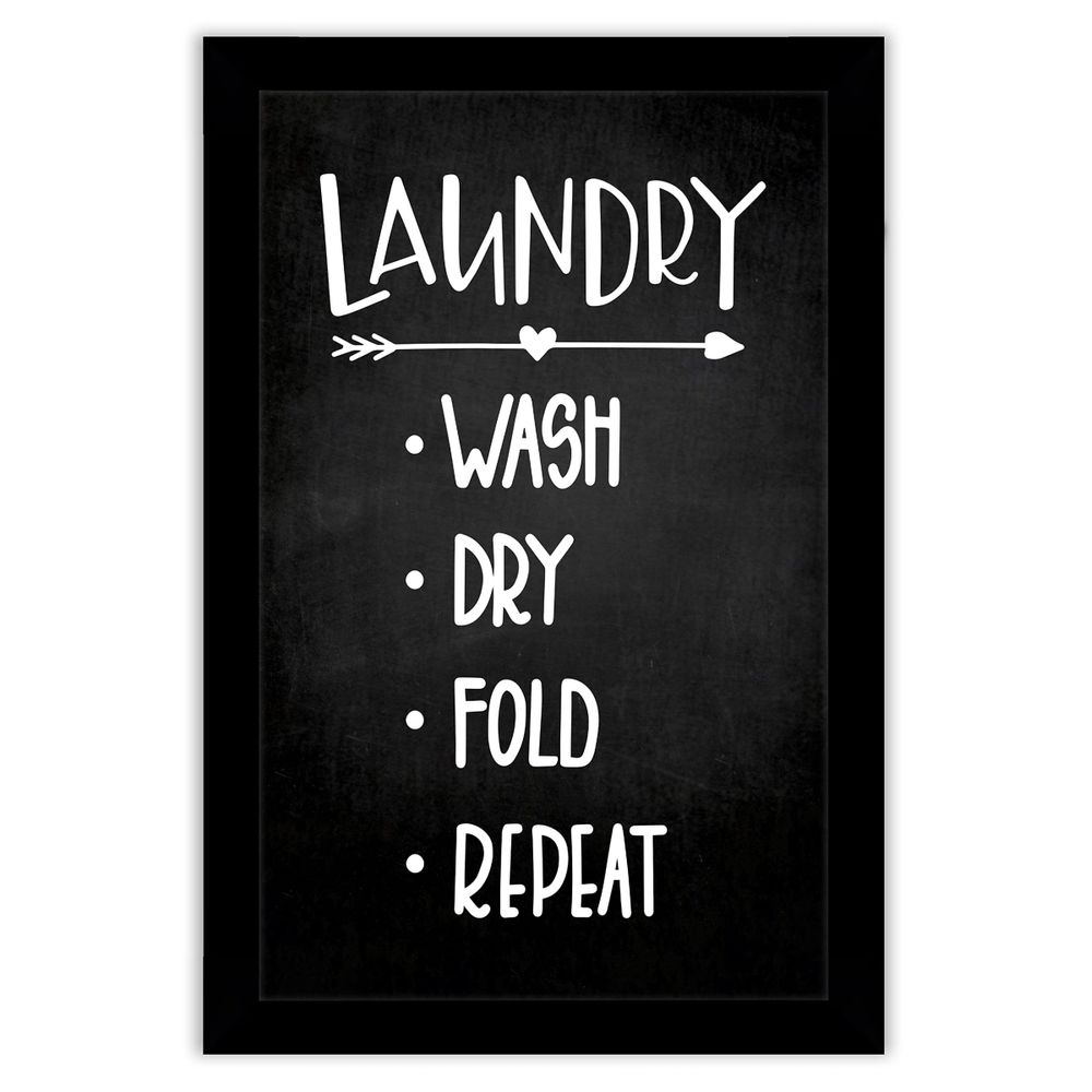 1 Peça Placa/Poster de Parede 'Lavar Secar Dobrar Repetir' para Decoração da Lavanderia - Inkdotpot 25,4 Cm × 30,48 Cm / Moldura Preta