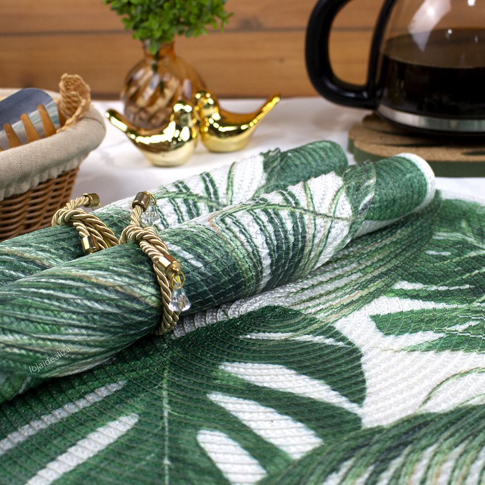 Esse Jogo Americano possui linda trama proporcionando um excelente efeito visual à mesa e combina com diversos tipos de louças e ambientes. Feito com material de alta qualidade, ele é muito fácil de limpar tornando-o muito prático para o dia a dia. VANTAGENS: - Material de alta qualidade; - Prático e Versátil; - Flexível e Resistente; - Ótimo acabamento; - Fácil de guardar; - Design moderno e elegante. LIMPEZA FÁCIL: - Pano úmido - Pano com álcool ou veja e etc - Lavar com esponja e detergente CONTÉM: 12 peça(s). COR: Verde | ESTAMPA: Folhas Costela de Adão DIMENSÕES: - Diâmetro: 38cm MATERIAL: 100% PVC Um produto Idealiza Comercio de Utilidades
