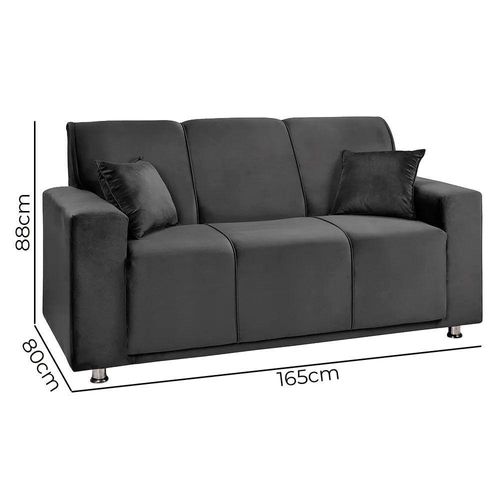 Sofá 3 Lugares Fixo Tokyo Veludo Chumbo Shop Das Cabeceiras Cinza Chumbo