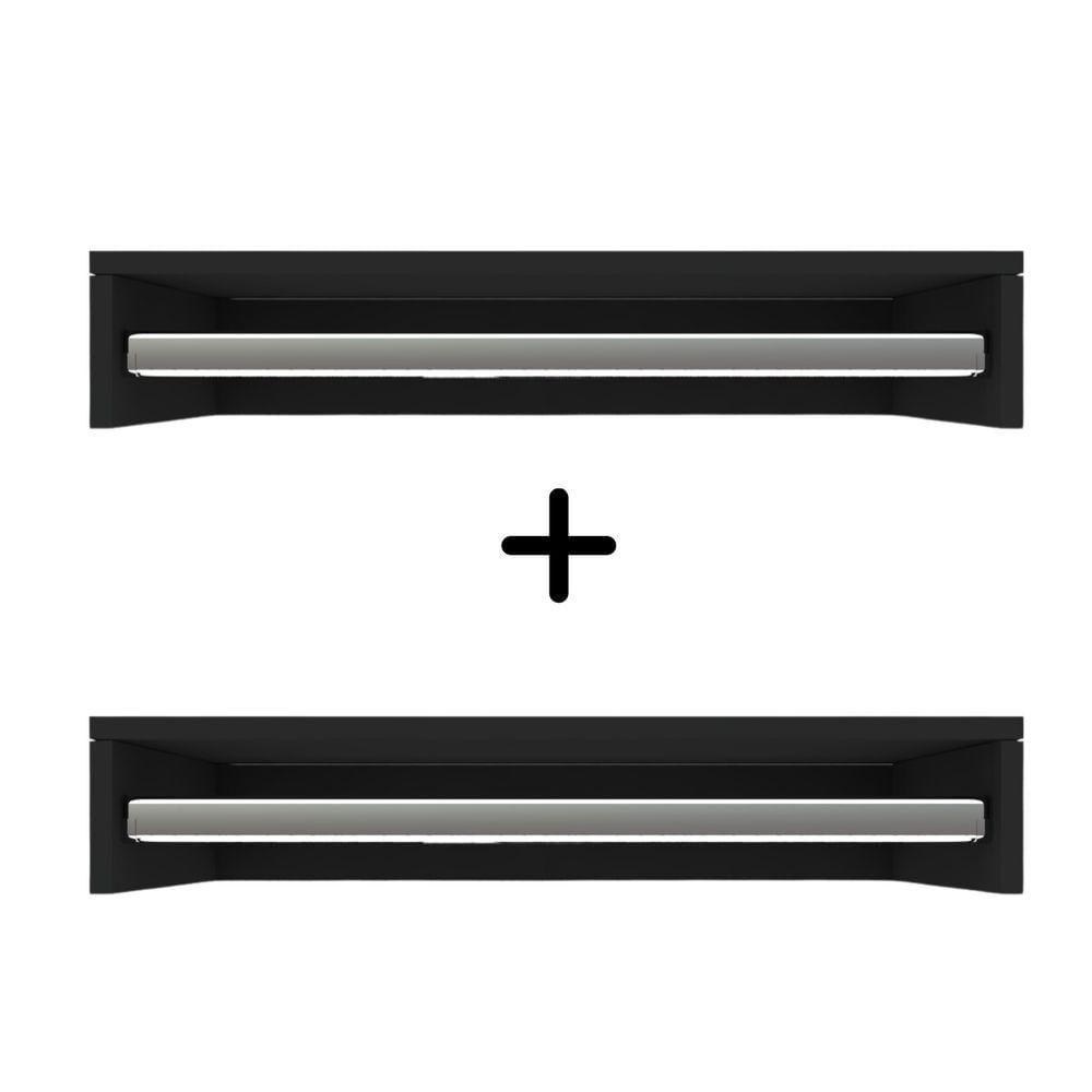 2 Cabideiros de Parede Suspenso Cor: Preto Dimensões do Produto: Altura: 11,5 cm Largura: 60 cmProfundidade: 25cm Este cabideiro de parede suspenso foi projetado para adicionar funcionalidade e estilo ao seu ambiente. Entrada da Casa: Perfeito para pendurar casacos, bolsas, chapéus e outros itens ao entrar em casa, mantendo a área organizada e prática. Quarto: Ideal para organizar roupas, lenços, bijuterias e outros acessórios, mantendo tudo acessível e arrumado. Banheiro: Pode ser utilizado para pendurar toalhas, roupões e outros itens de higiene pessoal. Escritório: Útil para pendurar casacos, bolsas e outros acessórios, mantendo o ambiente de trabalho organizado e livre de desordem. Fabricado em MDF material durável e de alta qualidade, garantindo resistência e longa vida útil. Fácil de montar, acompanhados um manual de instruções detalhado.Itens incluso: 2 Cabideiros suspenso para parede