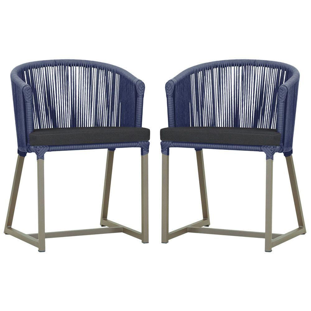 2 Cadeiras De Jantar Noronha Fendi Corda Nautica E11 Trama Azul