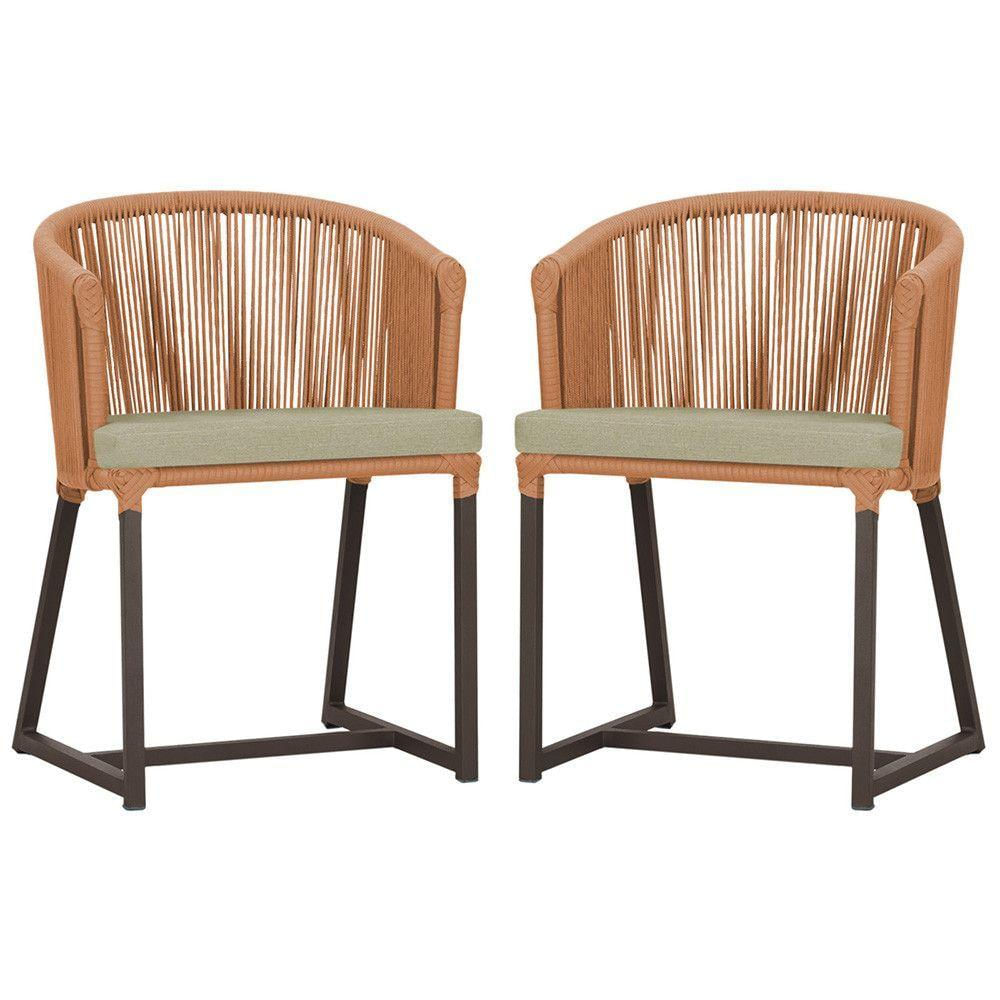 2 Cadeiras De Jantar Noronha Marrom Corda Náutica E7 Trama Terra Cota
