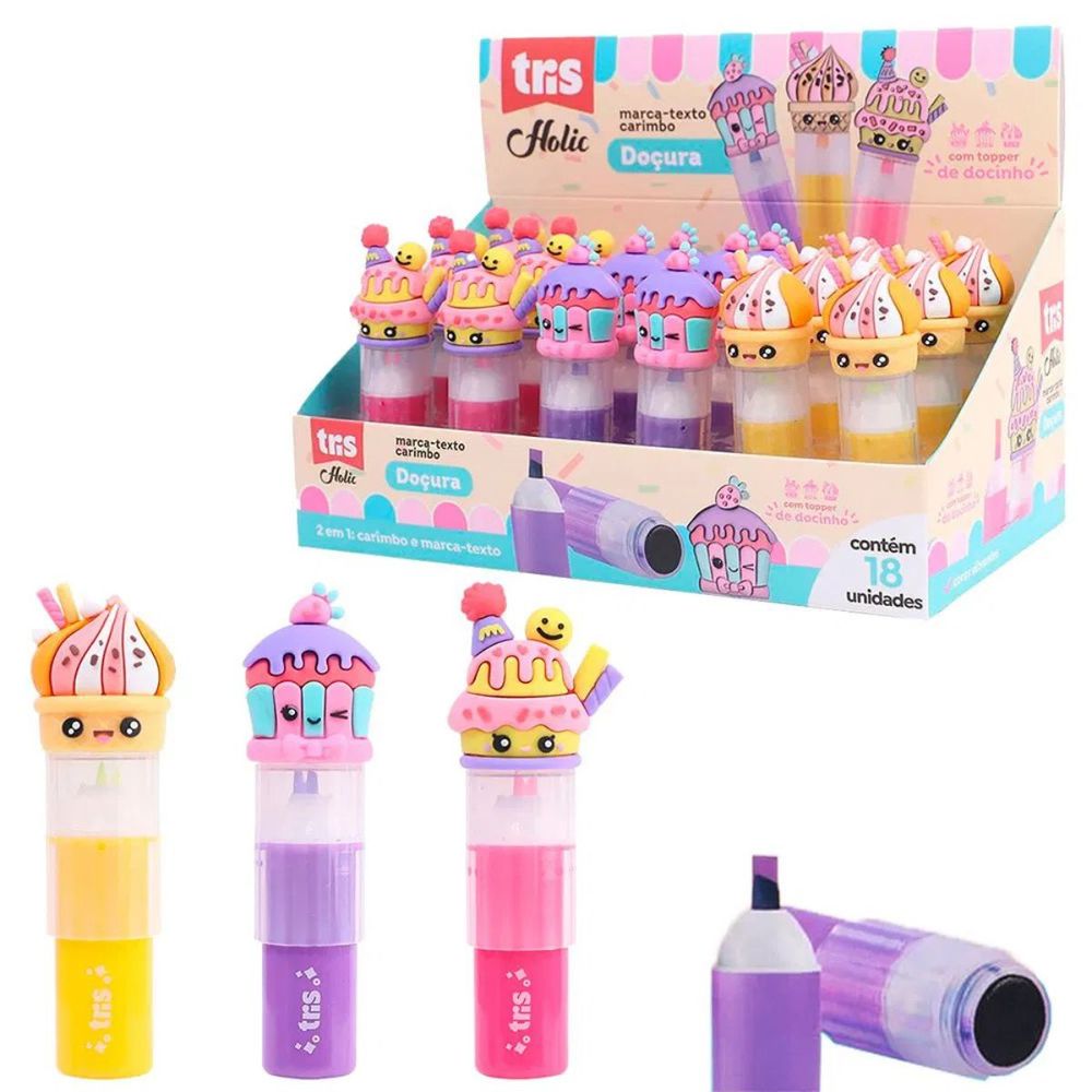 2 EM 1 MARCA TEXTO E CARIMBO DOÇURA HOLIC - COM TOPPER DE DOCINHO - TRIS