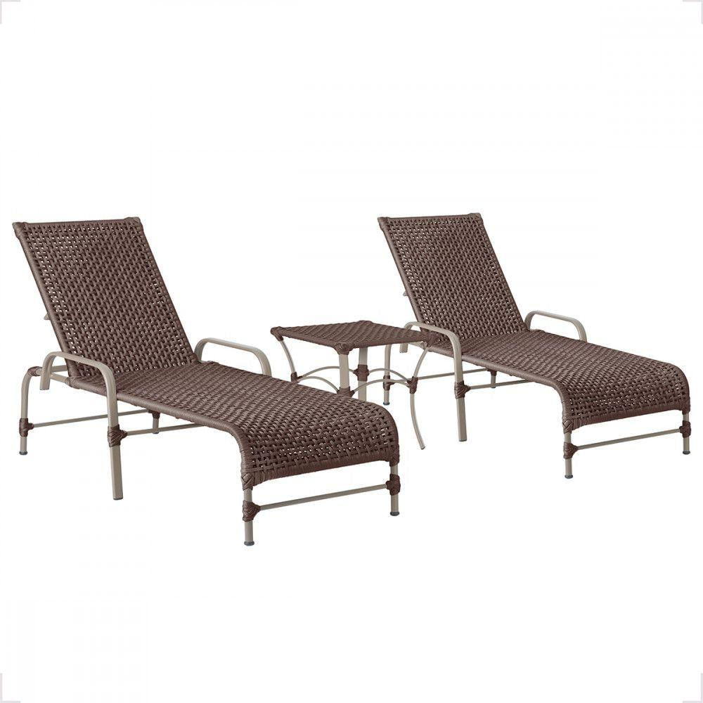 2 Espreguiçadeira Catar E 1 Mesa Garden Cor Fendi Marrom