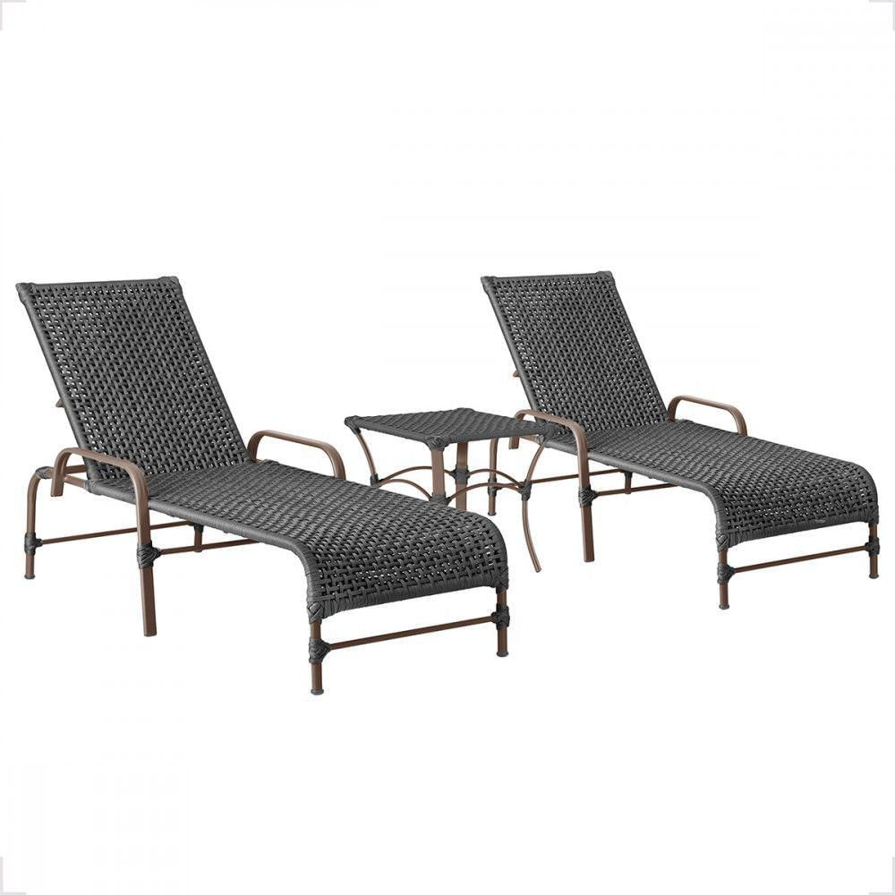 2 Espreguiçadeira Catar E 1 Mesa Garden Cor Marrom Preto