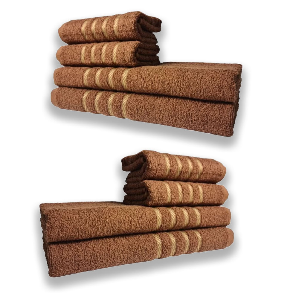 2 Jogos de 4 Toalhas 4 Banho 4 Rosto Montreal 100% Algodão Marrom