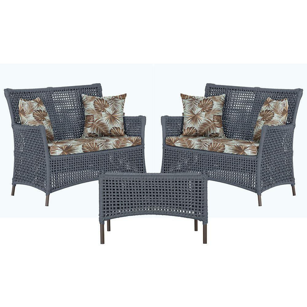 2 Sofás E Mesa Igapó Alumínio Marrom Corda Náutica E6 Trama Prata