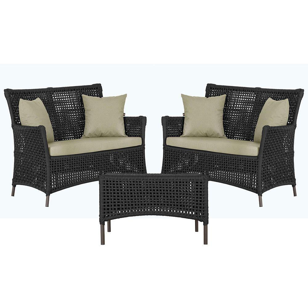 2 Sofás E Mesa Igapó Alumínio Marrom Corda Náutica E7 Trama Preto