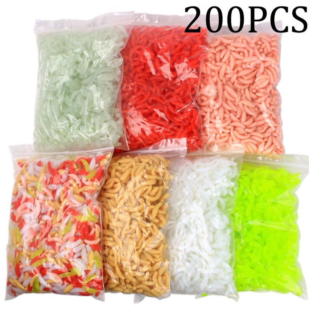 200 Pacotes de Iscas de Pesca Macias de 2cm com Cheiro 10 peças / branco