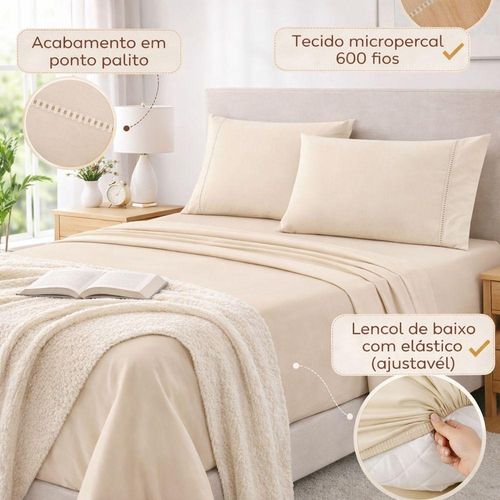Jogo De Lençol Casal Padrão Premium Soft 600 Fios Micropercal Avelã Ponto Palito Toque Macio 4 PeçasR$ 157,445 x de R$ 31,48 s/juros no cartão Le Biscuit