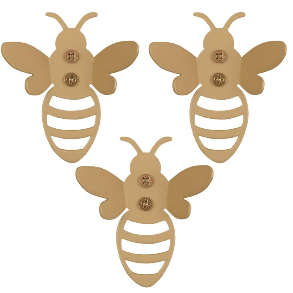 3 Cabideiros de Parede Abelha Dourada Ganchos para Pendurar Roupas Bolsas Mochilas Multiuso