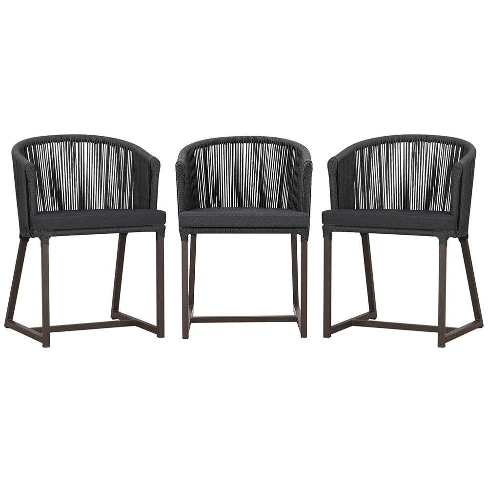 3 Cadeiras De Jantar Noronha Marrom Corda Náutica E11 Trama Preto