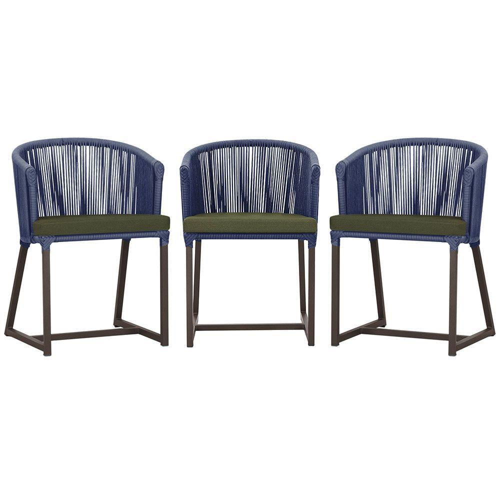3 Cadeiras De Jantar Noronha Marrom Corda Náutica E13 Trama Azul