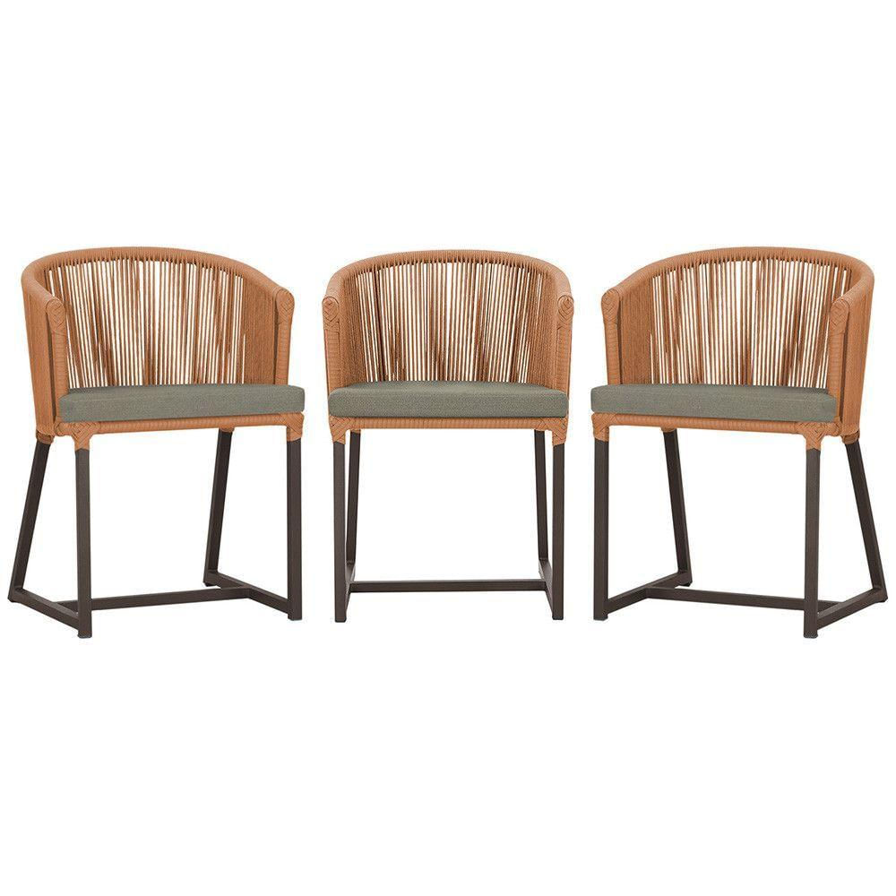 3 Cadeiras De Jantar Noronha Marrom Corda Náutica E8 Trama Terra Cota