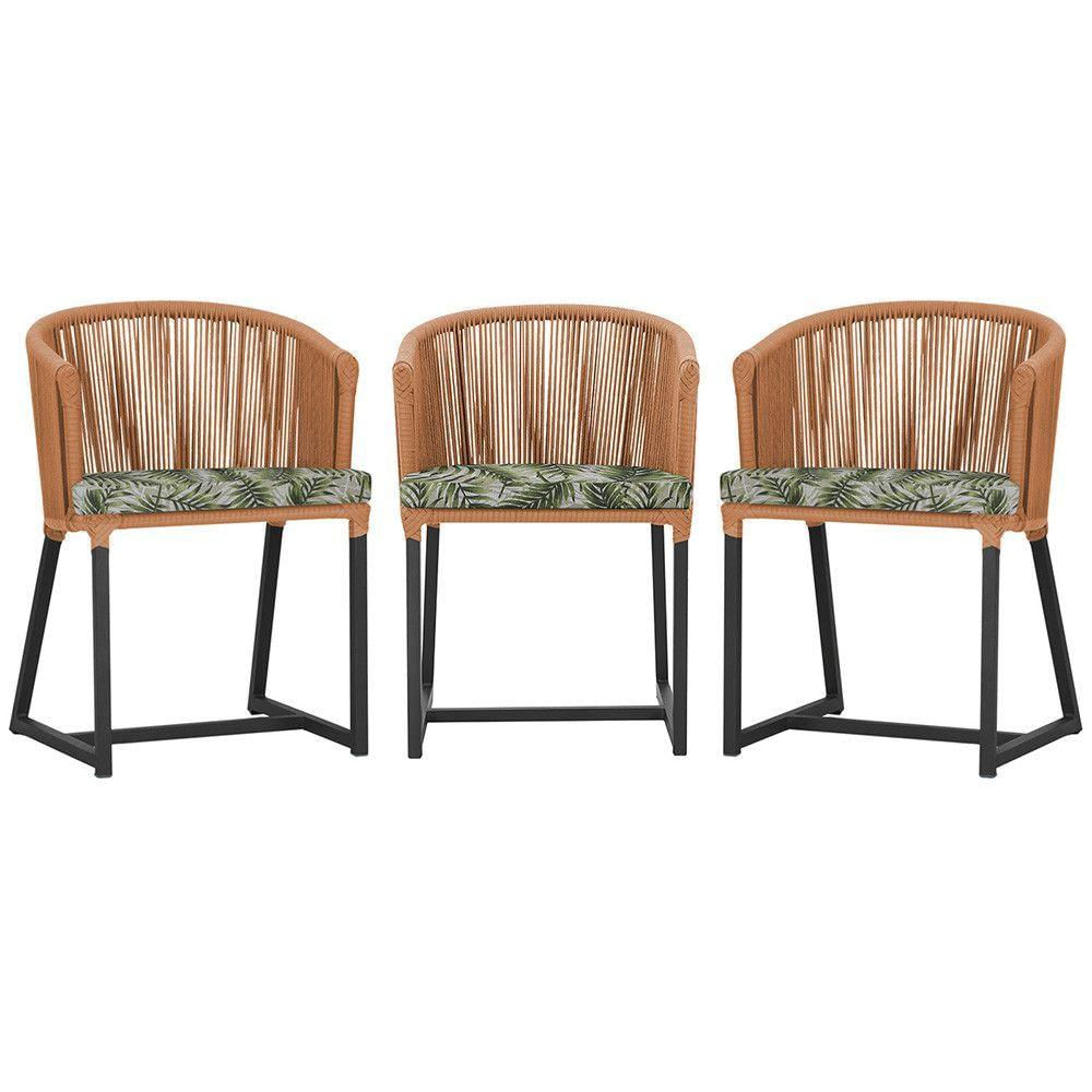 3 Cadeiras De Jantar Noronha Preta Corda Náutica E5 Trama Terra Cota