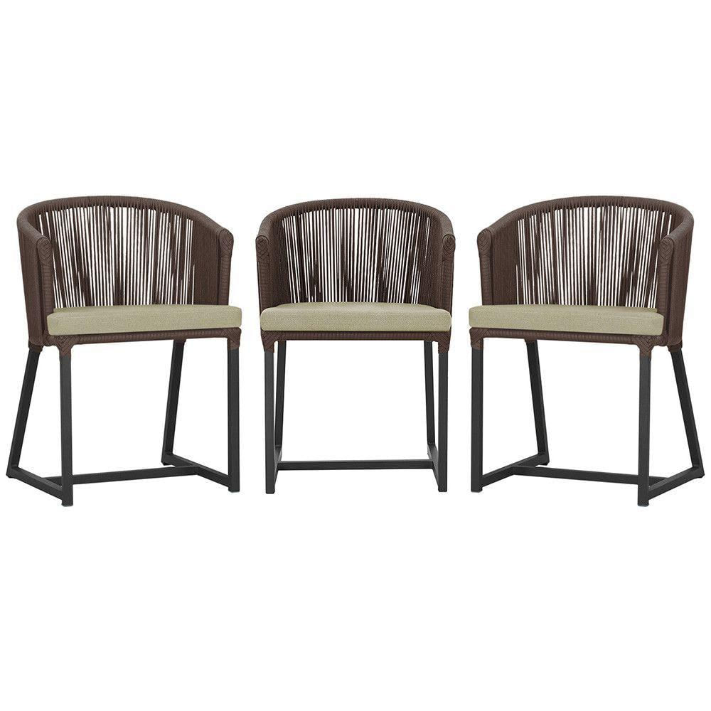 3 Cadeiras De Jantar Noronha Preta Corda Náutica E7 Trama Marrom