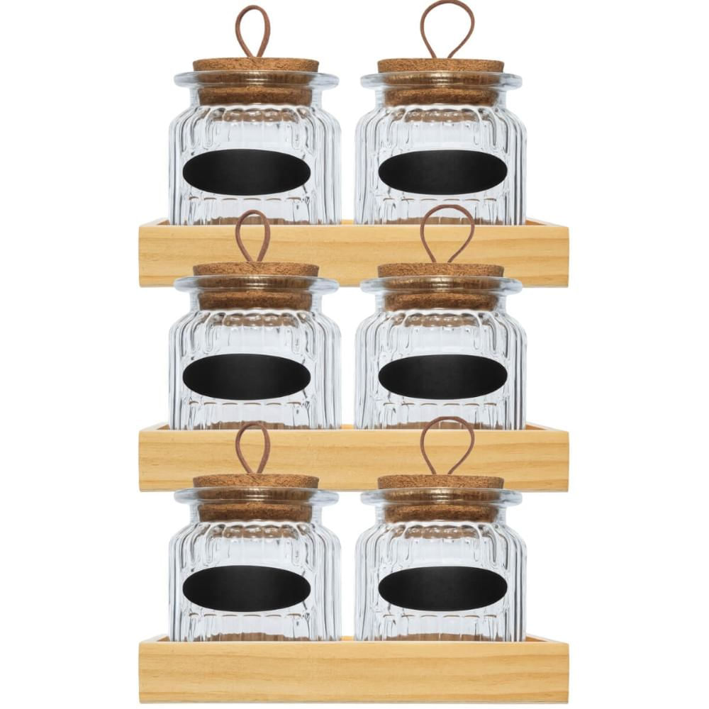 3 Conjuntos Porta Temperos Especiarias Potes de Vidro 260ml Bandeja Madeira Lyor