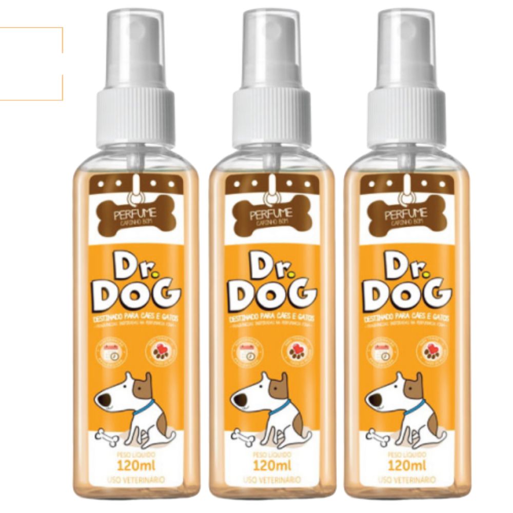 3 x Perfume Loção Colônia Pet Shop Banho e Tosa Fragrância Cachorro e Gato Amadeirado 120ml Dr. Dog Carinho Bom Alta fix