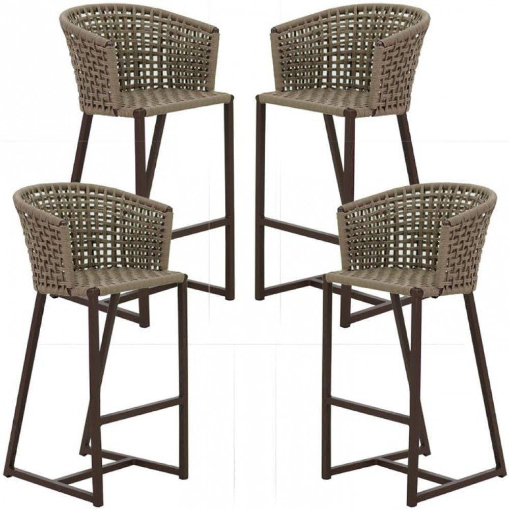 4 Banquetas Bali Em Alumínio E Corda Náutica Trama Original Azul