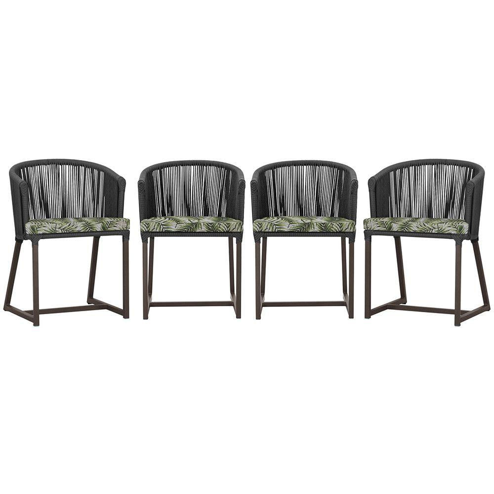 4 Cadeiras De Jantar Noronha Marrom Corda Náutica E5 Trama Preto