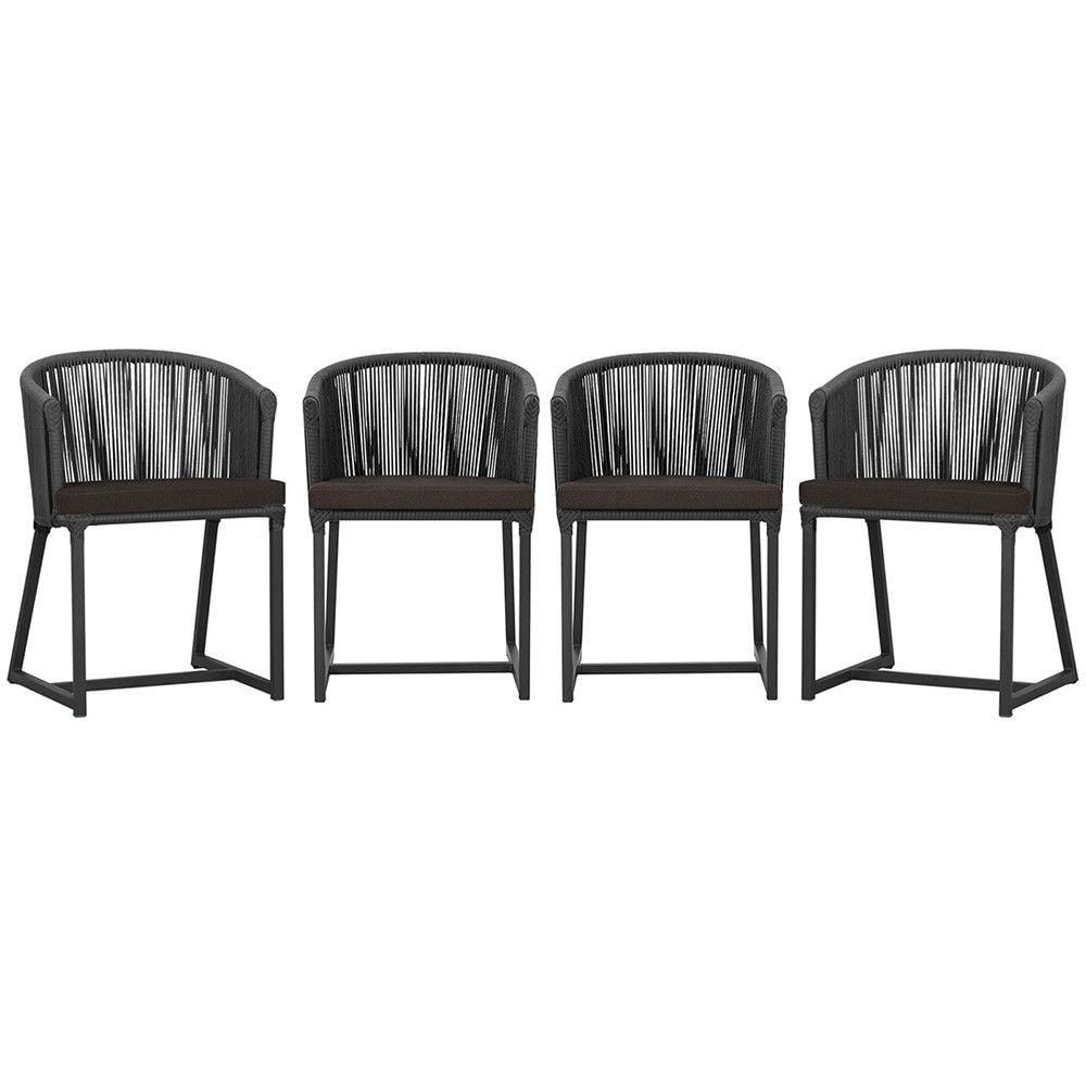 4 Cadeiras De Jantar Noronha Preta Corda Náutica E9 Trama Preto