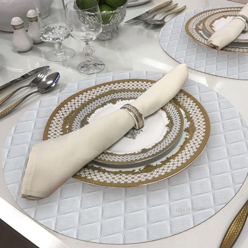 4 Jogo Americano Redondo Matelasse Branco Impermeável Pvc