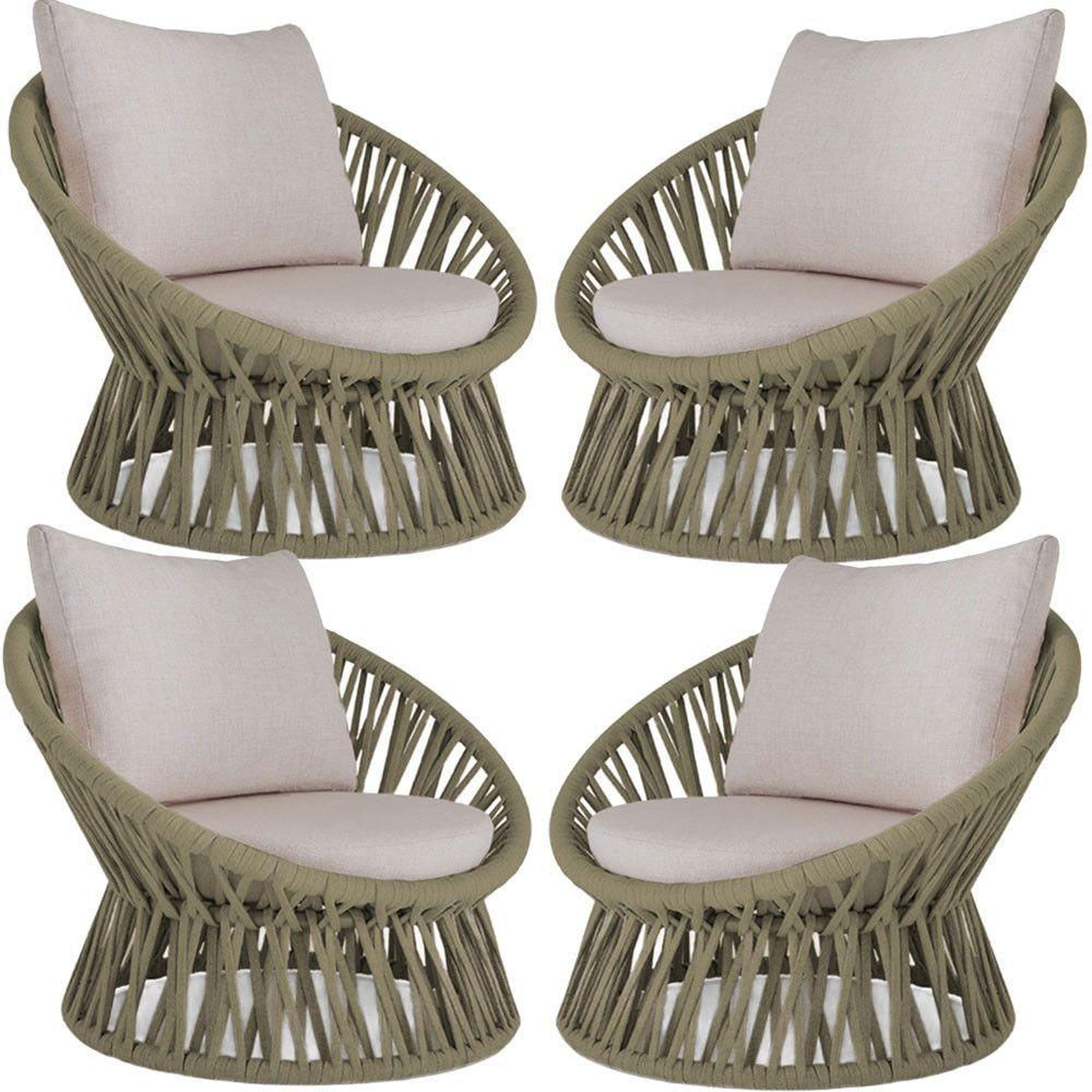 4 Poltrona Area Externa Monza Alumínio Pintura Corda Náutica Rami