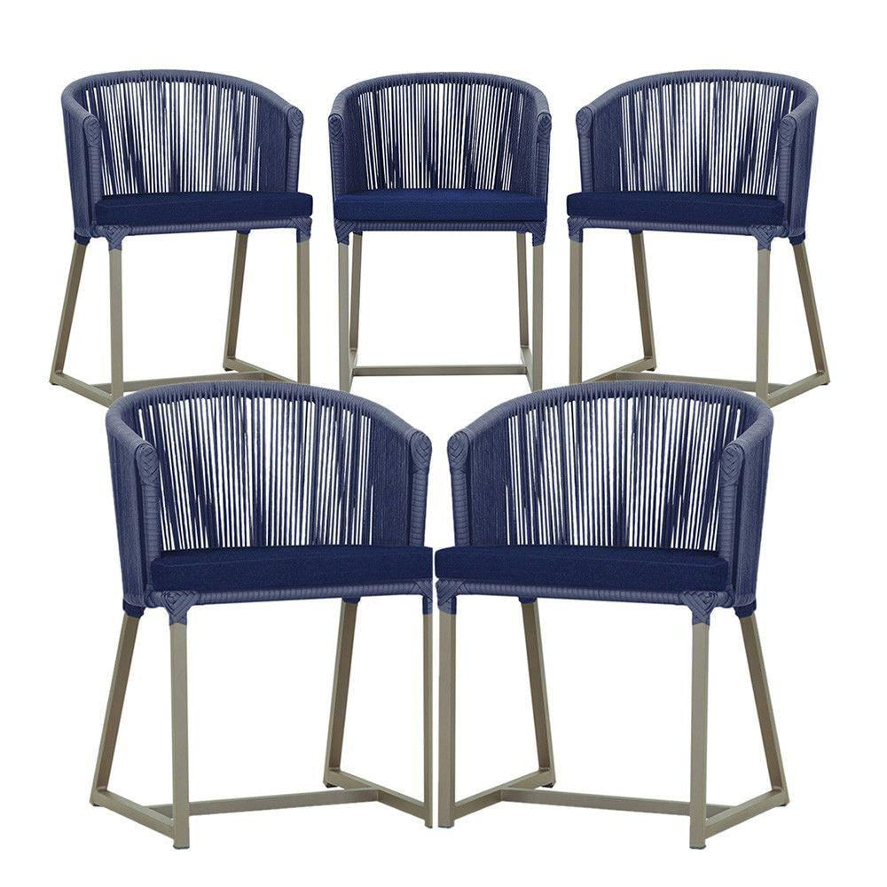 5 Cadeiras De Jantar Noronha Fendi Corda Náutica E10 Trama Azul