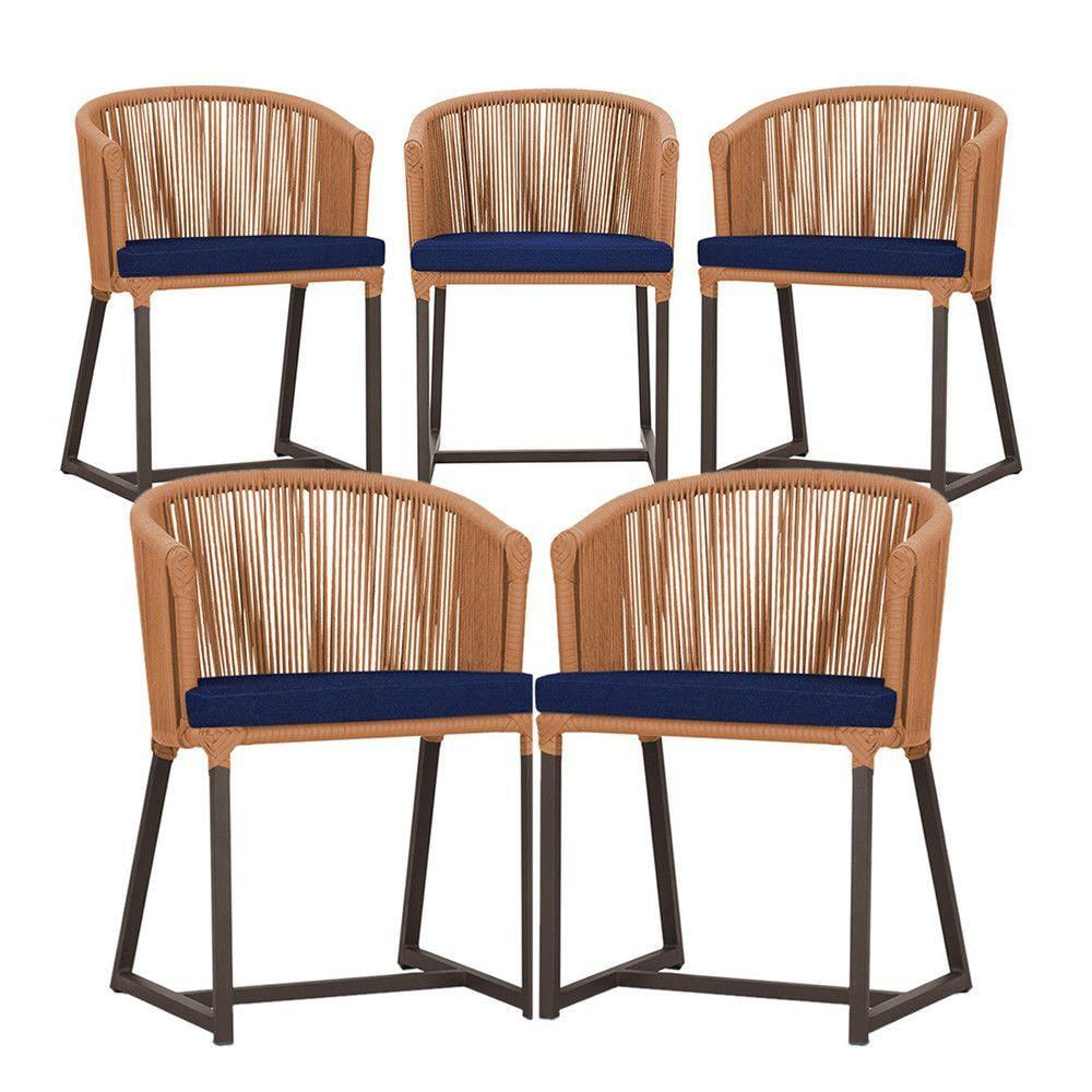 5 Cadeiras De Jantar Noronha Marrom Corda Náutica E10 Trama Terra Cota
