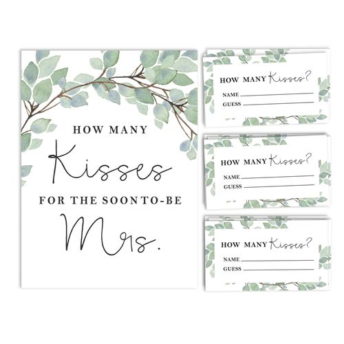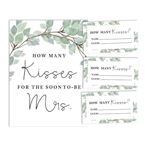 50 Cartões de Bingo Quadrados Brancos para Preencher Ideias de Presente para Chá de Noiva e Despedida de Solteira com Folhagens - Inkdotpot 8,89 Cm × 5,08 Cm / Branco - Quantos Beijos?