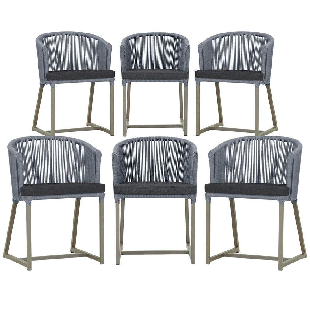 6 Cadeiras De Jantar Noronha Fendi Corda Náutica E11 Trama Prata