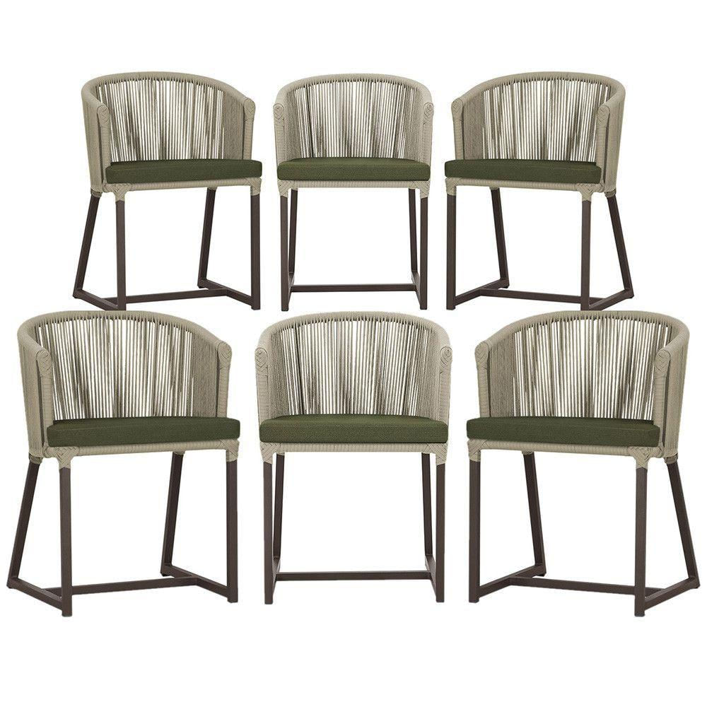 6 Cadeiras De Jantar Noronha Marrom Corda Náutica E13 Trama Rami
