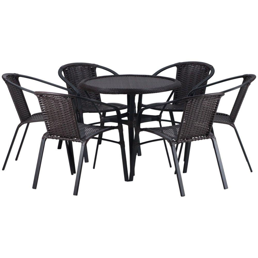6 Cadeiras E Mesa Floripa Tampo Tramado Alumínio Trama Preto