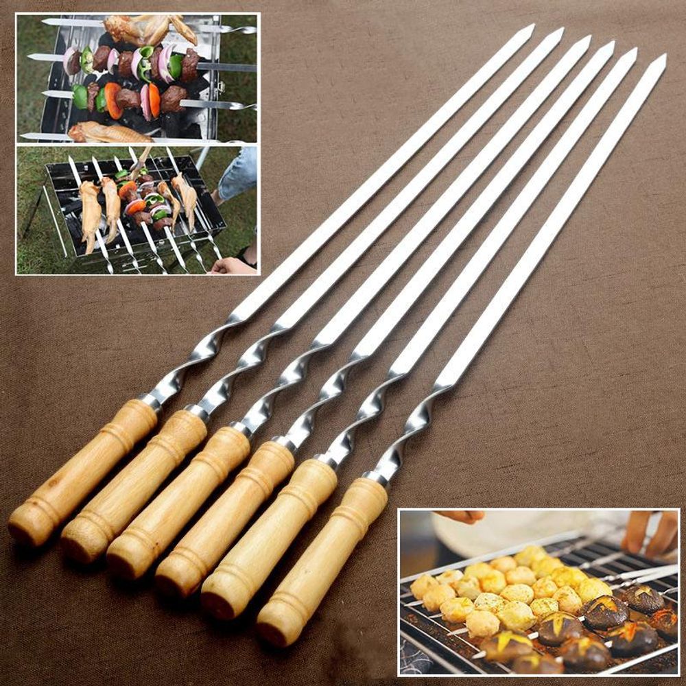 6 Peças de Espetos de Aço Inoxidável para Churrasco