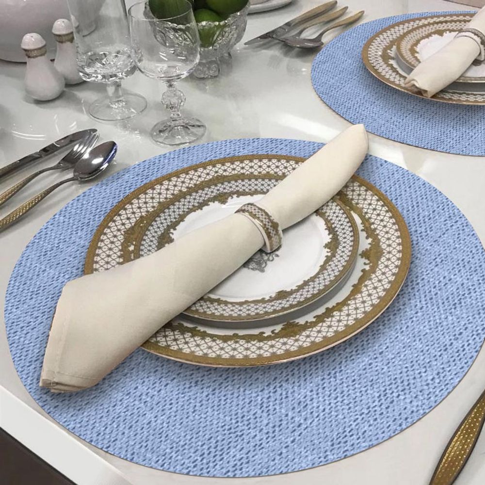 FÁCIL DE LIMPAR! PRÁTICO PARA O DIA A DIA! Além de proporcionar um excelente efeito visual à mesa, ele combina bem com diversos tipos de louças, mesas e ambientes. Não retém resíduos de alimentos proporcionando praticidade para o dia a dia. VANTAGENS - Fácil de limpar; - Impermeável; - Prático e versátil; - Resistente e flexível; - Fácil de guardar; - Cabem em qualquer formato de mesa; - Combina com qualquer ambiente; CONTÉM: 8 peça(s) COR: Azul Claro MATERIAL: PVC DIMENSÕES - Diâmetro: 38cm FÁCIL DE LIMPAR: basta passar um pano úmido com álcool ou sabão. Somos fabricantes, por isso o melhor preço para esse produto. Um produto Idealiza Comercio de Utilidades