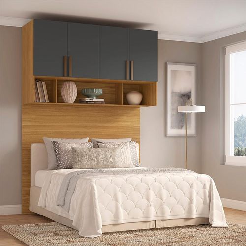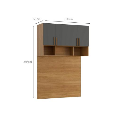 Guarda-Roupa Modulado Aéreo com Cabeceira Altezza Trend 4 Portas Freijó e Titânio 150 cm