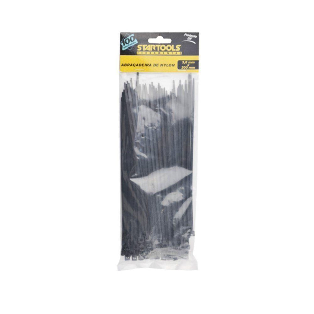Abraçadeira de Nylon 20CM X 3,6MM com 100 Unidades para Organização de Cabos Resistente Preta