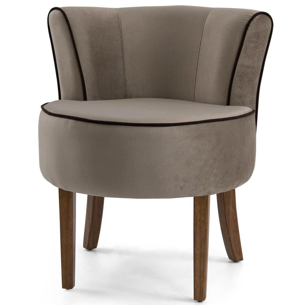 Poltrona Decorativa Sala de Estar Base de Madeira Ayla Veludo Marrom Claro - Gran Belo