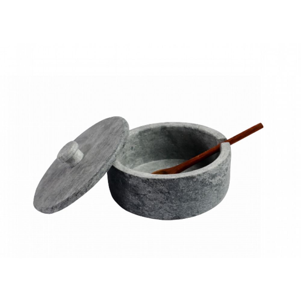 Açucareiro Farinheira Gourmet Pedra Sabão com Colher G 12cm