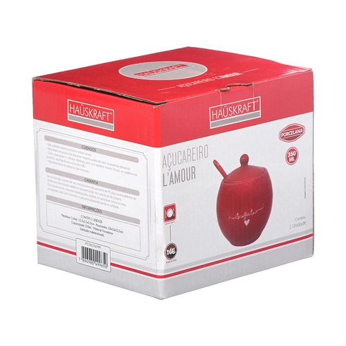 Açucareiro com Colher Etilux Lamour em Porcelana Vermelho 350ml