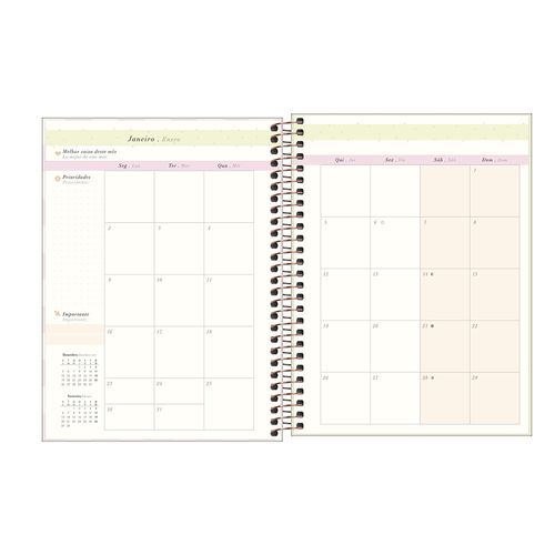 A Agenda Planner Tilibra Espiral Soho vai ajudar na organização da sua rotina, tornando-a mais produtiva e ajudando na programação de atividades, anotações rotineiras e para listar compromissos. São 80 folhas no formato 17,7cm x 24cm decoradas e com visões anual, mensal e semanal, além de algumas folhas para anotações.