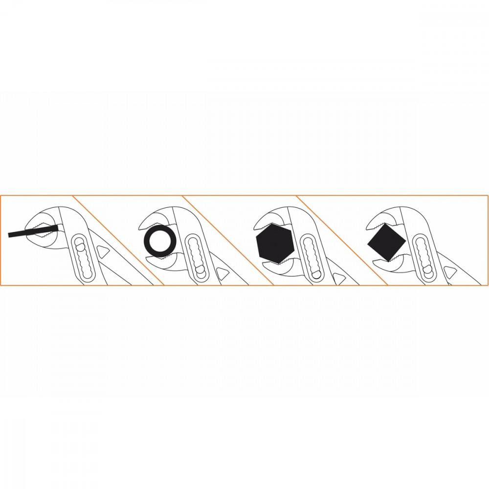 Forjado em aço cromo vanádio. Acabamento fosfatizado. Possui 4 regulagens de abertura. Isolação elétrica de 1.000 V C.A. Produto em conformidade com a NBR9699 e NR10. ISO 8976. Os alicates de corte são testados quanto à resistência ao desgaste do gume de corte em máquina de ensaio específica. Os alicates possuem dureza diferenciada no gume de corte e no corpo. Os alicates também são testados com relação à aderência das empunhaduras de PVC. Utilizado para trabalhos de mecânica e principalmente hidráulica. As ferramentas são produzidas e testadas conforme normas específicas.