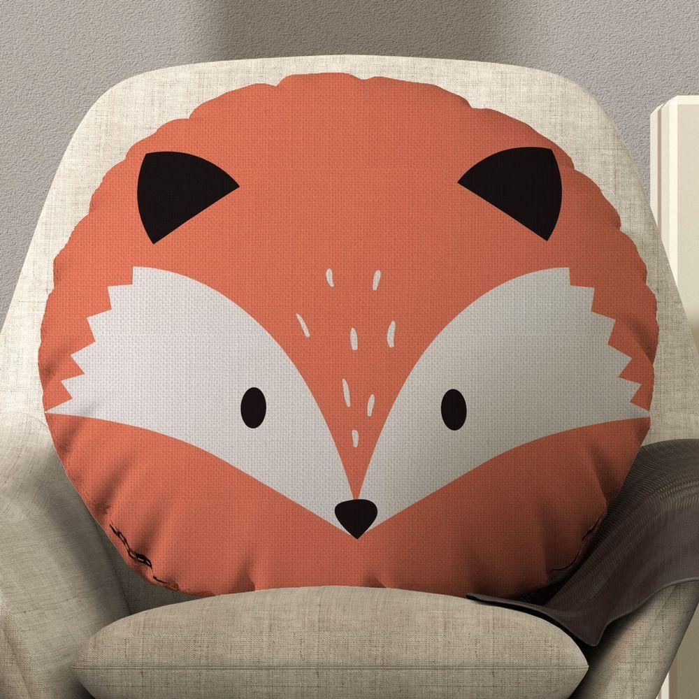 Almofada Estampada Avulsa Redonda Cheia Infantil Bichinhos 45cm X 45cm Com Enchimento De Silicone Estampa Raposa