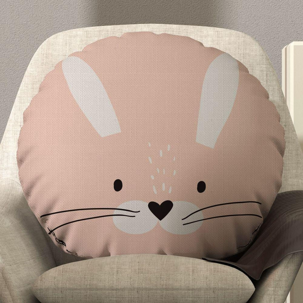 Almofada Redonda Avulsa Cheia Infantil Bichinhos 45cm X 45cm - Enchimento De Silicone Estampa Coelho